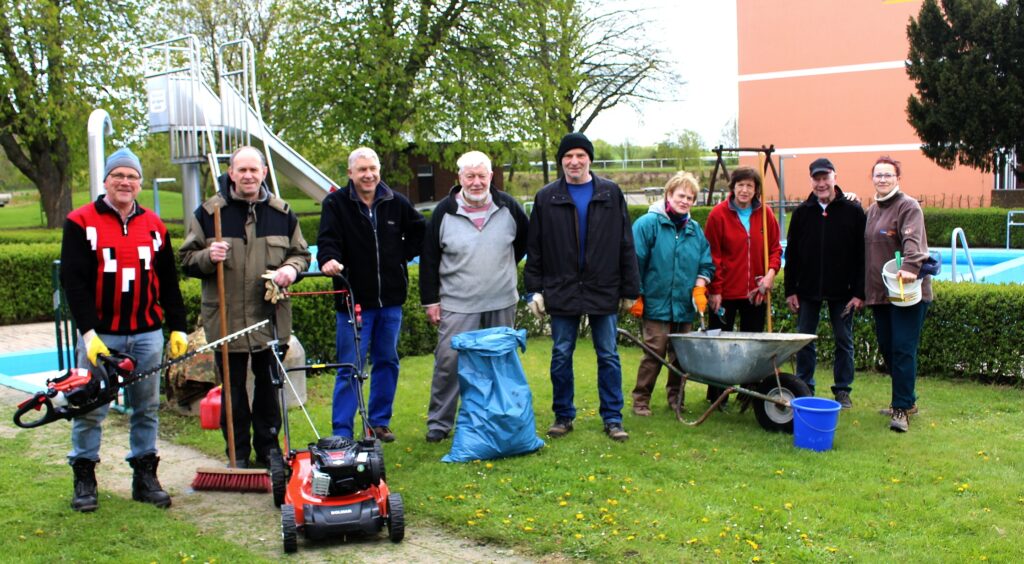 Die freiwilligen Arbeitseinsätze im Freibad Remlingen sind ein wichtiger Bestandteil für den Erhalt und die Pflege der Anlage. Vereinsmitglieder engagieren sich regelmäßig, um beispielsweise Grünflächen zu pflegen, kleinere Reparaturen auszuführen und das Freibad für die Saison vorzubereiten. Durch diesen gemeinschaftlichen Einsatz wird nicht nur die Infrastruktur erhalten, sondern auch das Vereinsleben gestärkt und das Freibad bleibt ein attraktiver Treffpunkt für die gesamte Gemeinde.